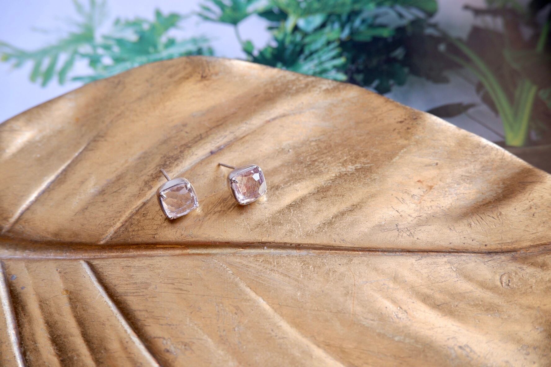 今回は透明感のあるゲーサイトインクオーツを使用したシンプルなピアスを製作しました。