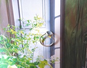 石の周囲は覆輪を丸味のあるギザギザに削り、アームは外付けにすることで可愛らしい印象に仕上げました。また石枠は丸くカーブを付けましたので、柔らかい雰囲気もプラスしています。