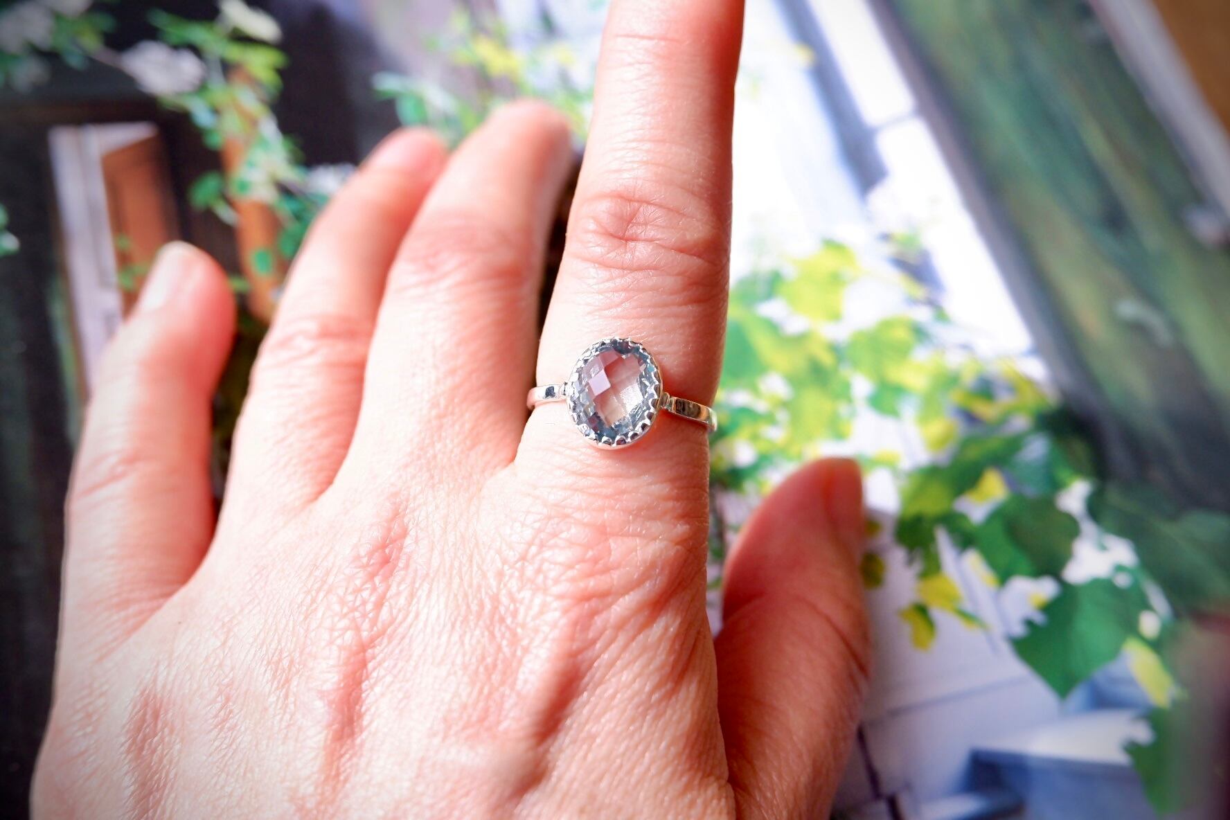 大粒ですが透明感があるので、指に嵌めても大袈裟な感じはしません。