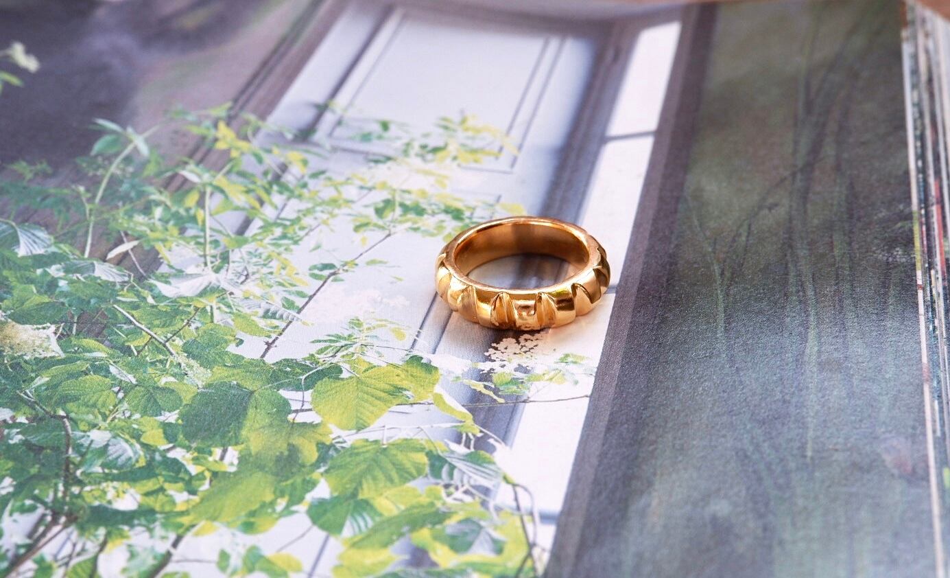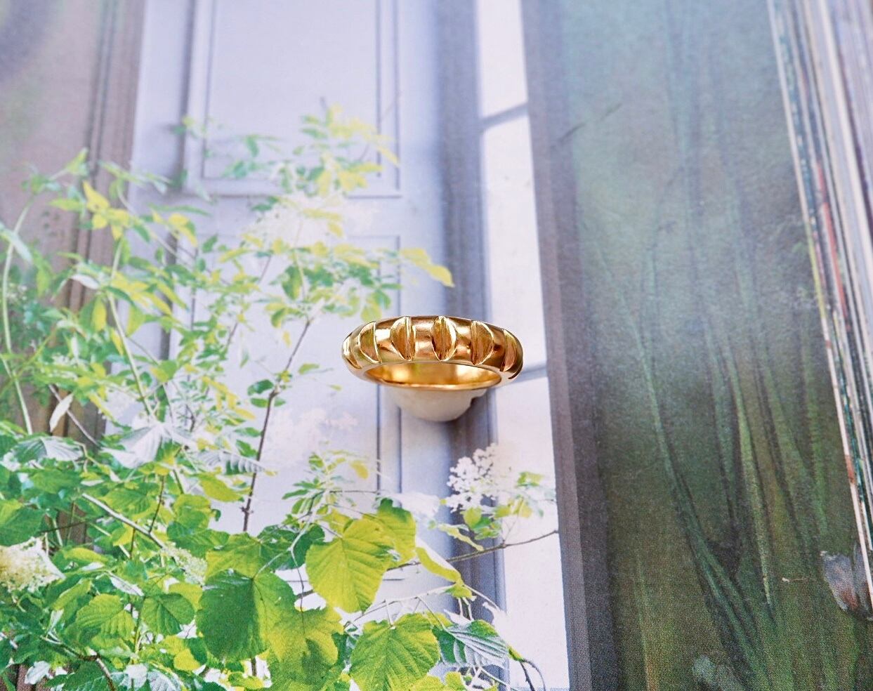 このリングはsilver925素材に18金コーティングを施しており、洗練された輝きが手元を美しく演出します。フレンチクルーラーの形状は遊び心満載で、普段のスタイルを華やかにしてくれることでしょう。